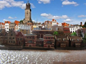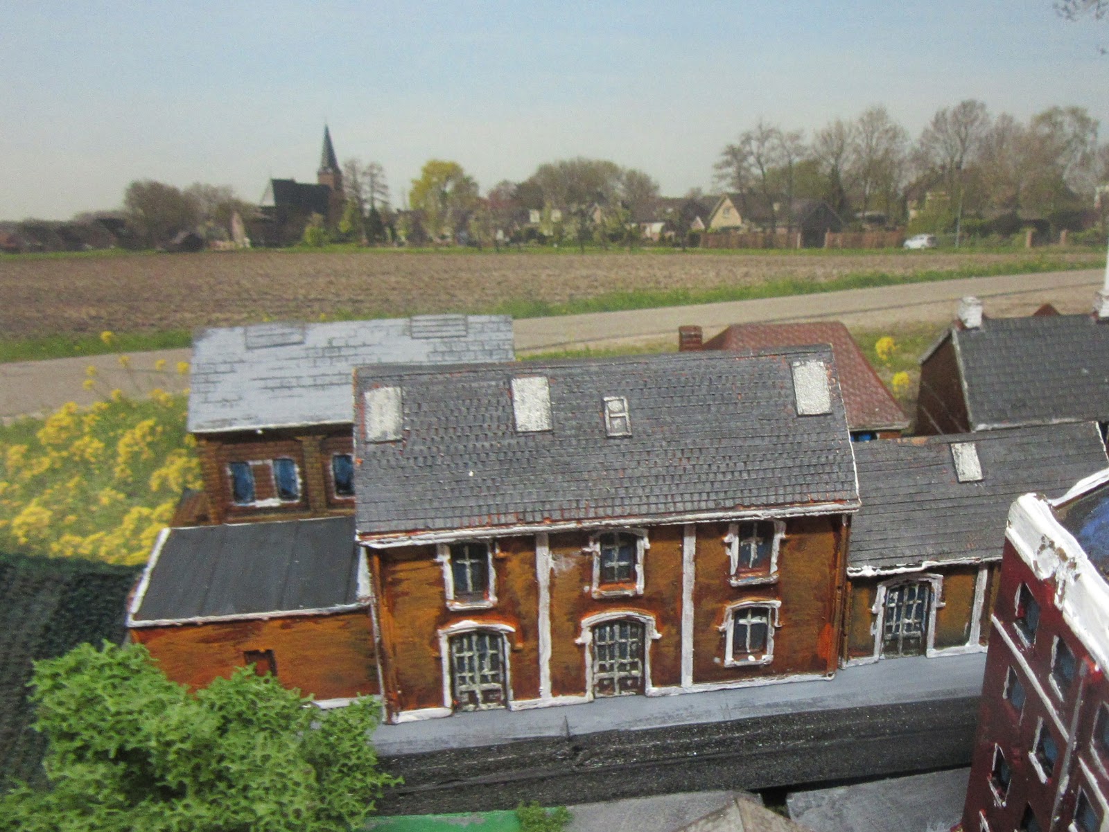 I have about 30 buildings now, not counting the ruined houses. Below a selection with photoshopped Deventer as backdrop. Do they blend in?