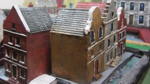 I don’t want an exact 6mm-copy of Arnhem or Nijmegen or Rotterdam. I use my scenery in different scenario’s. But the houses must appear Dutch, not Spanish, Normandic French or German/English Tudor. I bought scenery online, 6mm Timecast & Leven. Timecast sells bigger buildings. In particular the East European Berlin/Lvov range is easy to convert: the buildings have distinct horizontal lines. Leven sells very authentic buildings. Together the two ranges make a great ‘Dutch’ city.