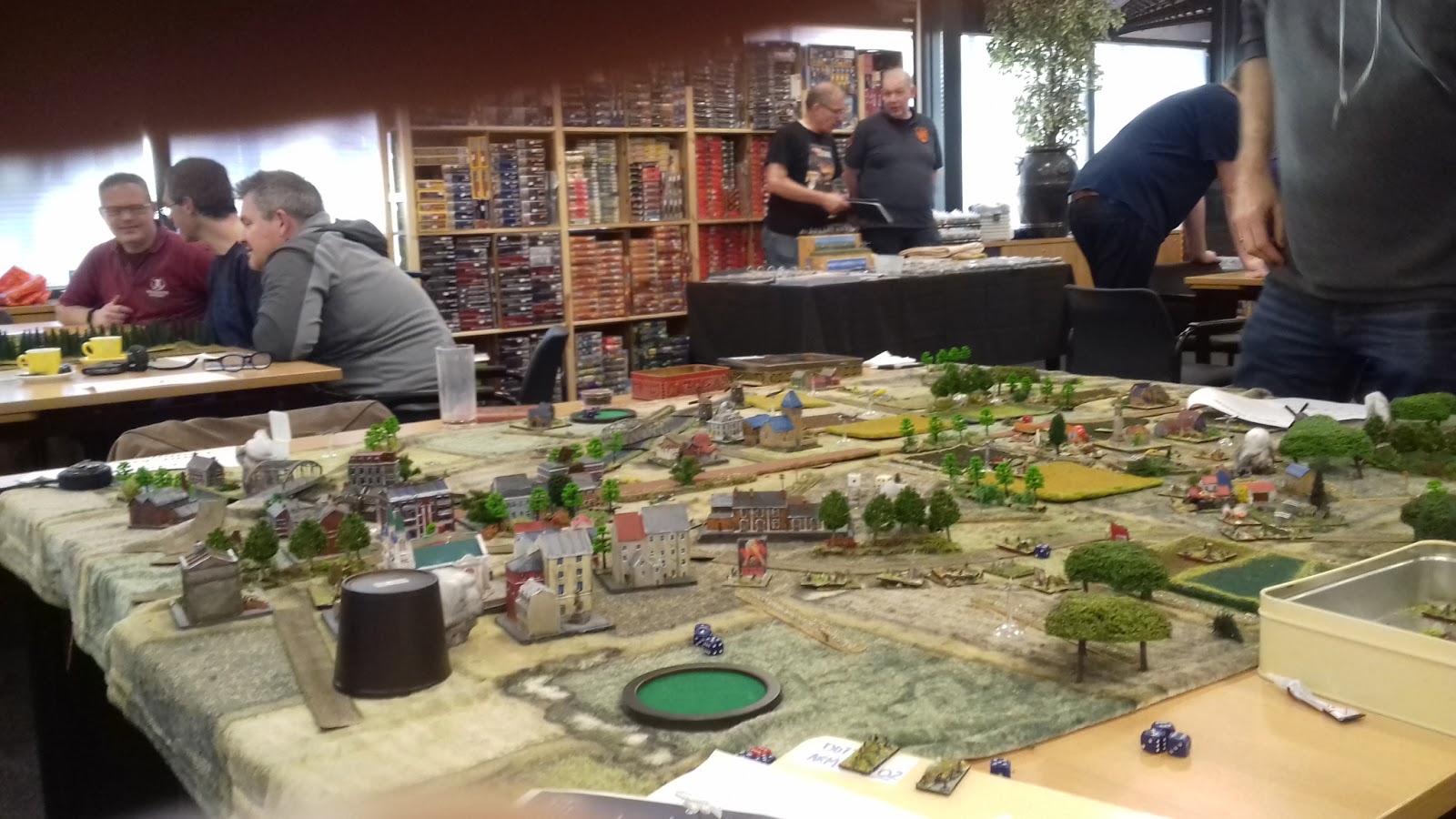 Yesterday I was a umpire/ table host at the Dutch participation wargame event Poldercon, yearly in Utrecht.I prepared a homemade BKCII-wargame scenario. I focused on the table and the scenario mostly. As BKCII-player I’m a newbie, WW2/6mm BKC is a new project for me. I fearlessly offered to host a game, though. The rules aren’t too difficult and with my gaming experience umpiring this fastplay BKCII-ruleset is simple. The event gave me the chance to take a more distant look at the game and to observe how other wargamers react on the rules.First a table sneak peek.