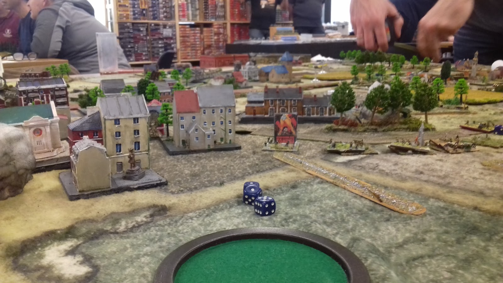About BKCII: it indeed is a pleasant system. The rules are quite clear, quick and promote maneuvering. As such, they are indeed a good match for the smaller scales. My players quickly understood the system. No bookkeeping needed, excellent for demoing. For blog readers that don’t know BKC: it’s a WW2-adaptation of Warmaster. Like Warmaster and Black Powder, a commander has to roll equal or below his Command Value with 2 dice to give an order to a group of units. CV is 8 or 9 mostly.