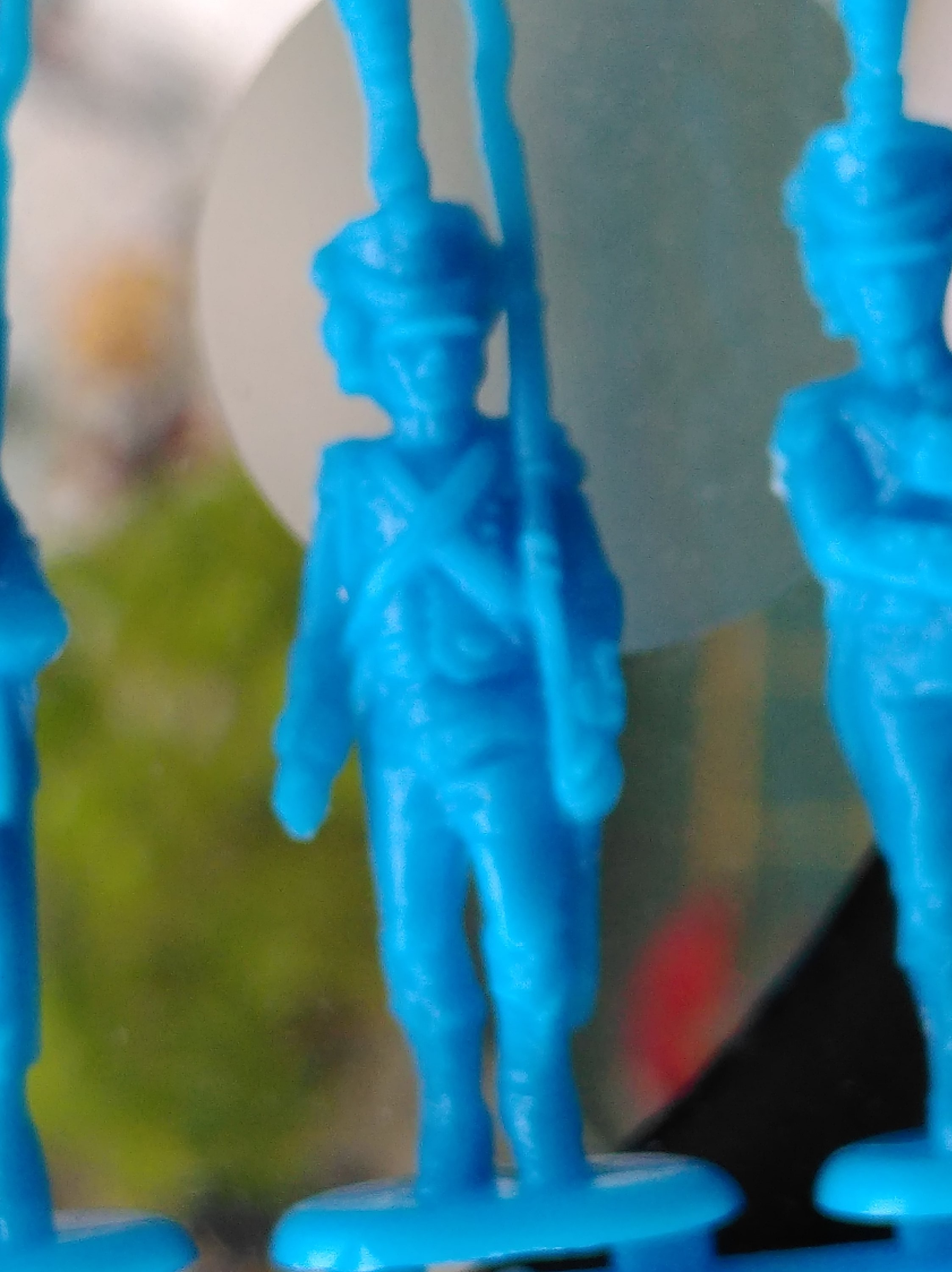 I painted my steadfast tin hard plastic soldiers while still framed. Layer by layer, line by line. I was a little more ambitious and precise in my painting than usual, inspired by the Franznap examples.