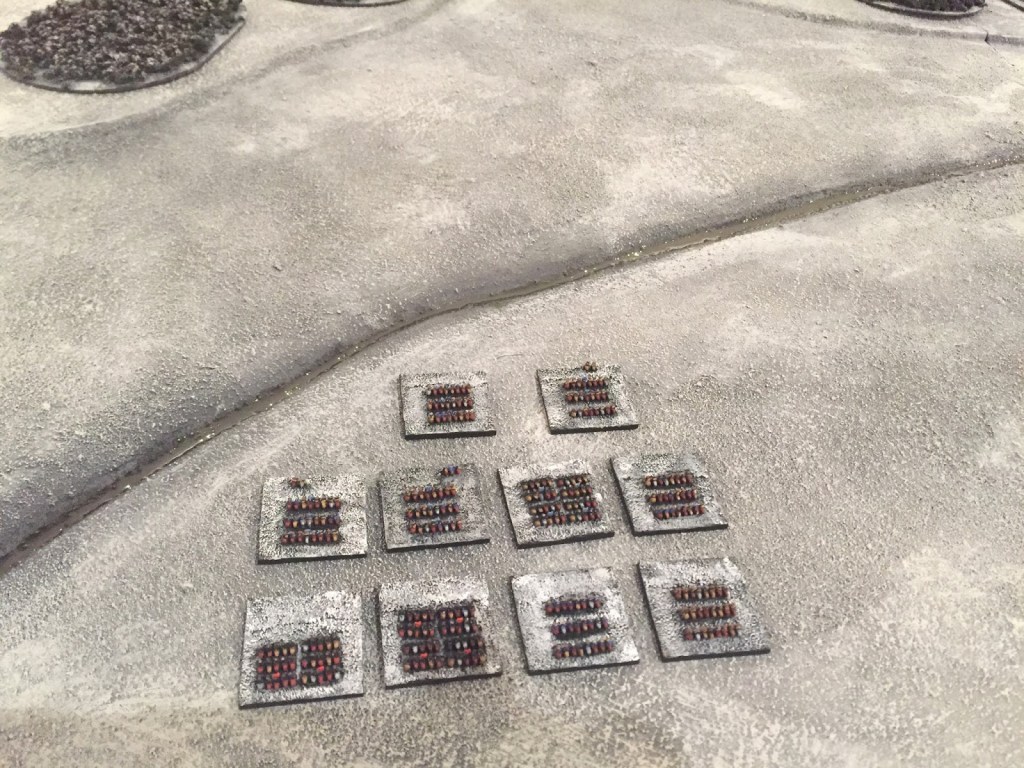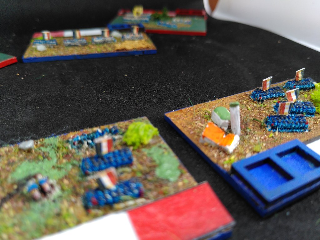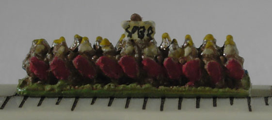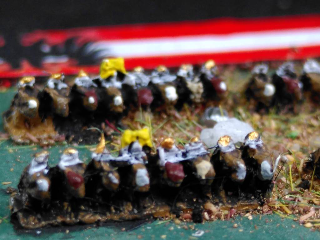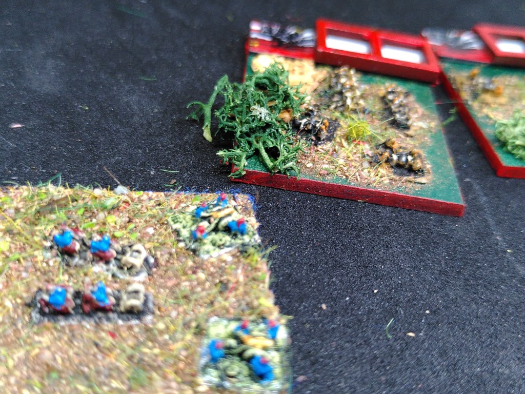 In 6mm the adage is ‘paint the unit, not the miniature‘. In 2mm the adage is: paint the base, not the unit. The tiny unit should contrast with the base and the base should accentuate the units.