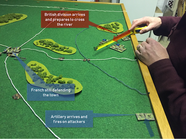 You could glue blue French troops on a khaki base. Notice this blue/yellow scheme on the Blücher card, above.