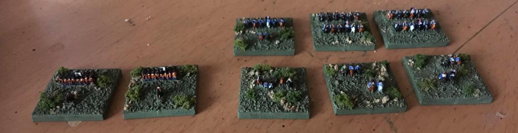For the French I decided to combine the blue battalions with a mixed chocolate brown and grass green accents.