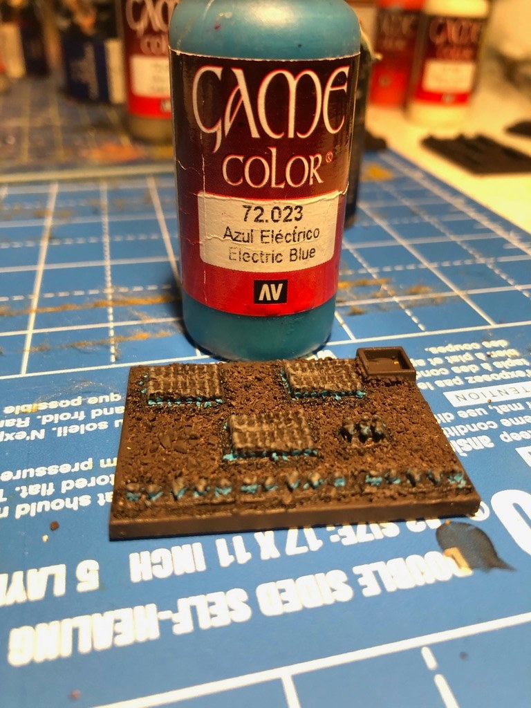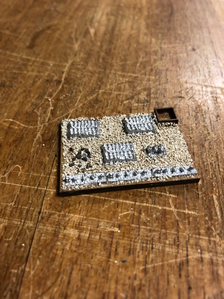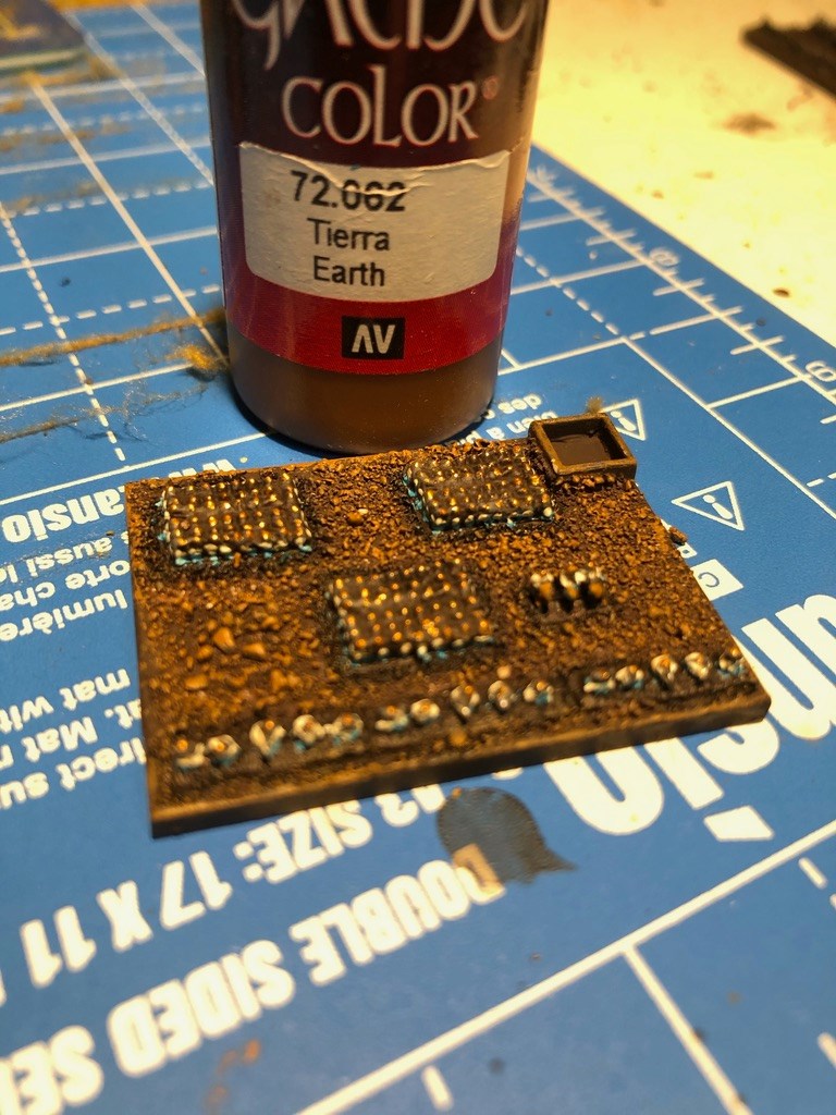 I didn’t find my primining dark enough and so I put some Vallejo Dark Tone (that’s a dark wash) around the figures to separate them visually from the base.