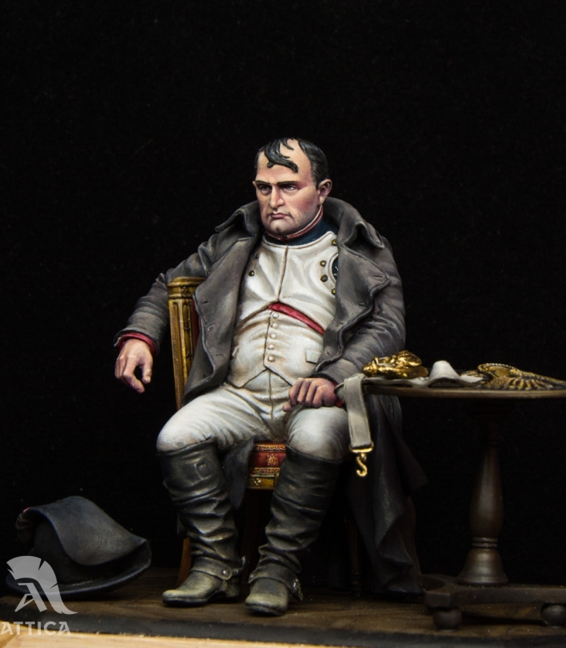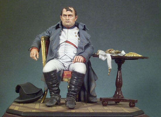 The miniature was inspired by the famous 1840 DeLaRoche-painting, above. It’s his artist’s impression, a fantasy. On March, 30th, 1814 the Allied powers occupied Paris. Napoleon went to Fontainebleau. His marshals refused to carry on. Bourienne, Napoleon secretary, writes about the fateful day in 1814. Napoleon,