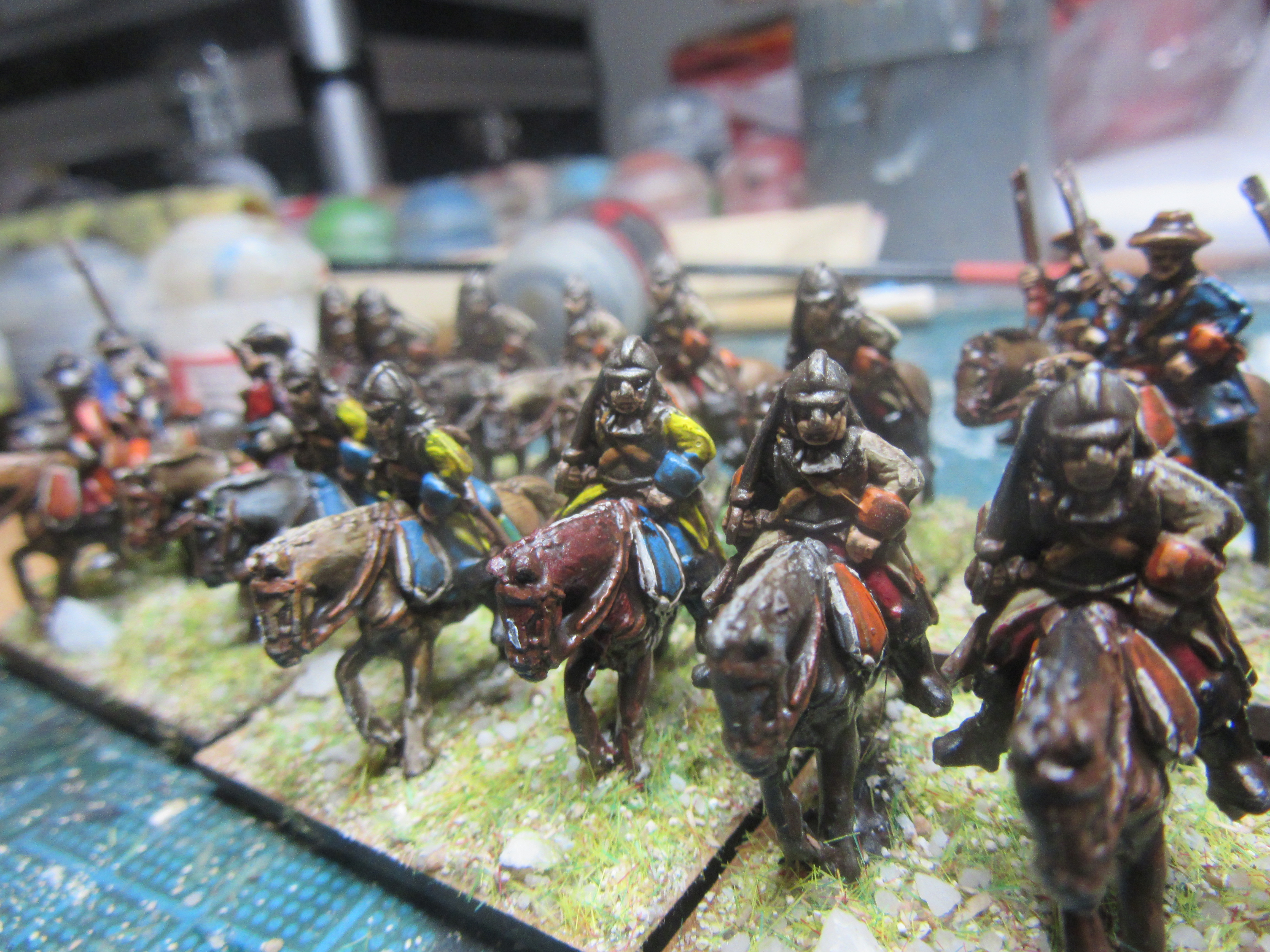 - Corrections. Maybe I was too fast, or was I upgrading my expectations after the first splash of paint, because I spent another 5 hrs = 300 minutes making corrections: re-highlighting, all hats a white stripe, finer details on standard bearers and officers etc.