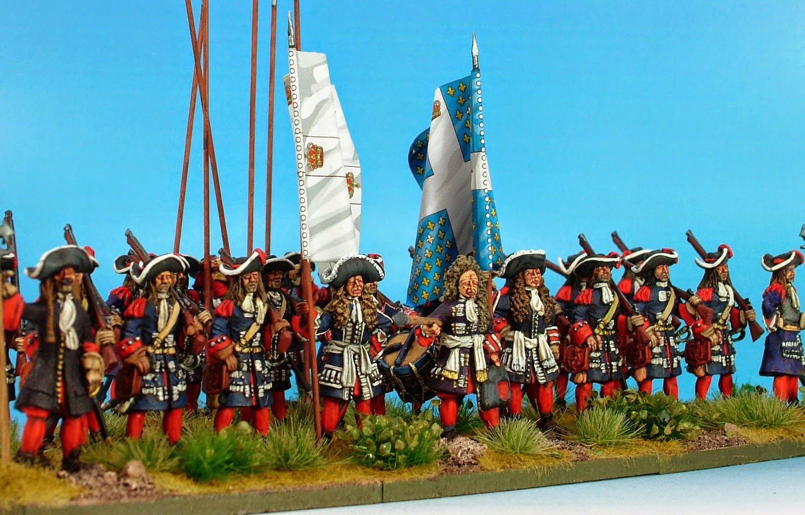 Any musketeer in the army of Louis XIV, William III or Marlborough with a sense of fashion would wear a cravate. I have been busy with a large League of Augsburg project, a NYW post-1692 mass army. Mainly Irregular 15mm miniatures. Good proportions, inexpensive, good for speedpainting. See below. All with cravates.