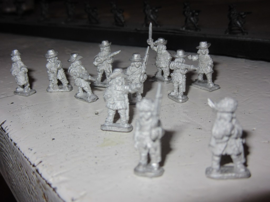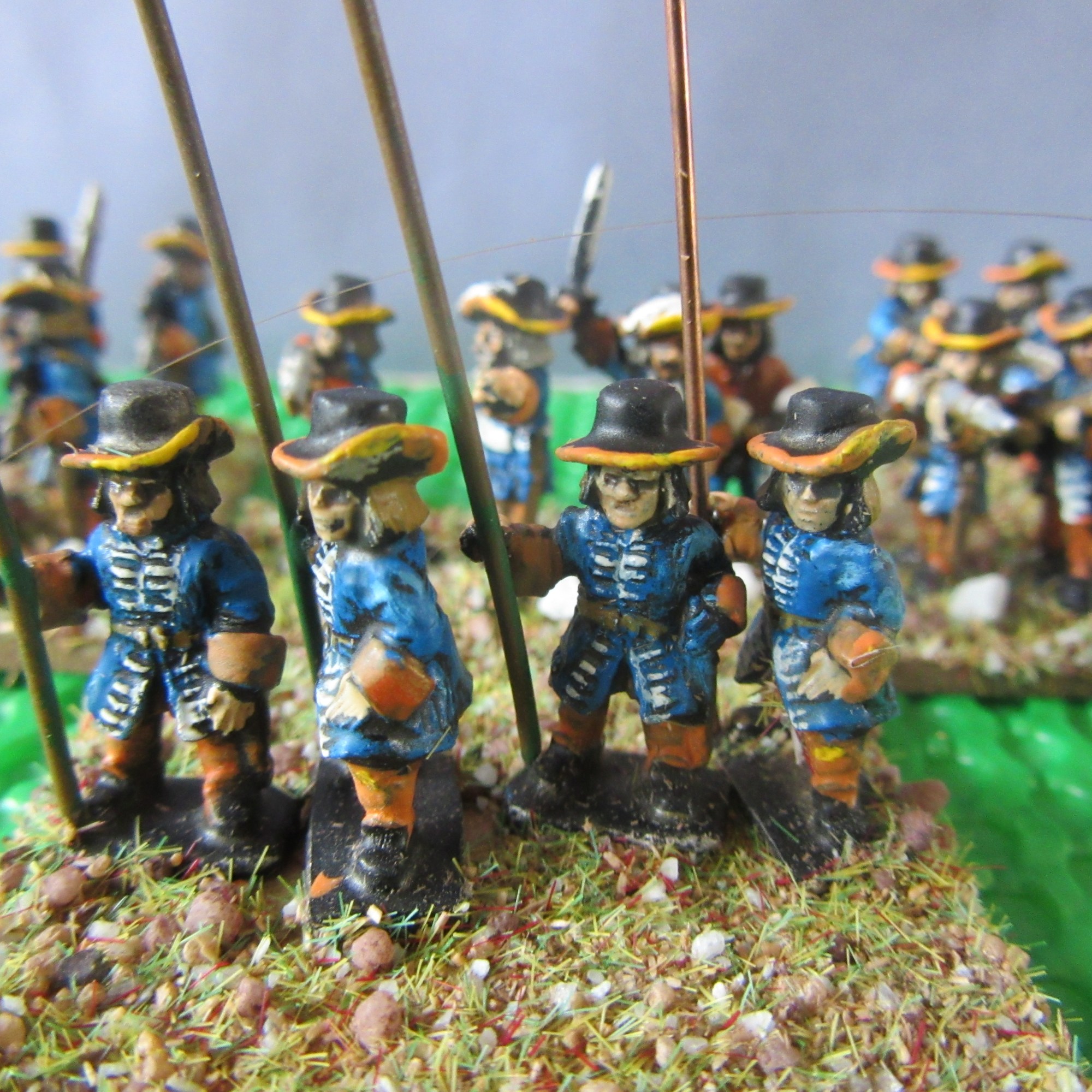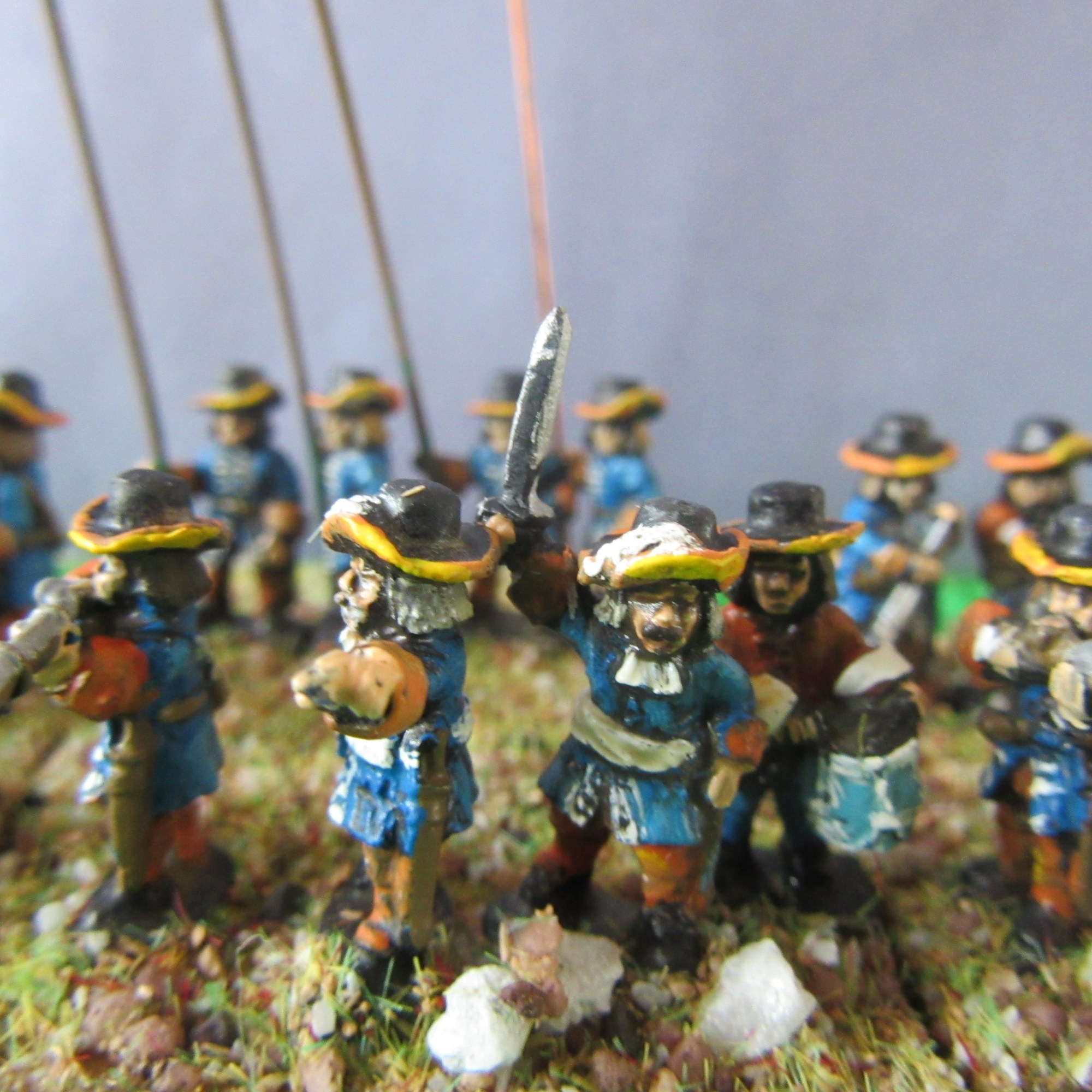 I noticed that the Essex/Irregular figures have double crossed strapbelts. Lurkio figures mostly have a single crossbelt, and the officers have no wigs, which is apparently more 1650-1695-ECW-fashion, according to the Osprey Louis XIV/Marlborough books. Two crossed belts and wigs appear to be more 1695-1710-style, the Osprey brooks indicate. Although no one can be sure: uniforms were not really standardized.