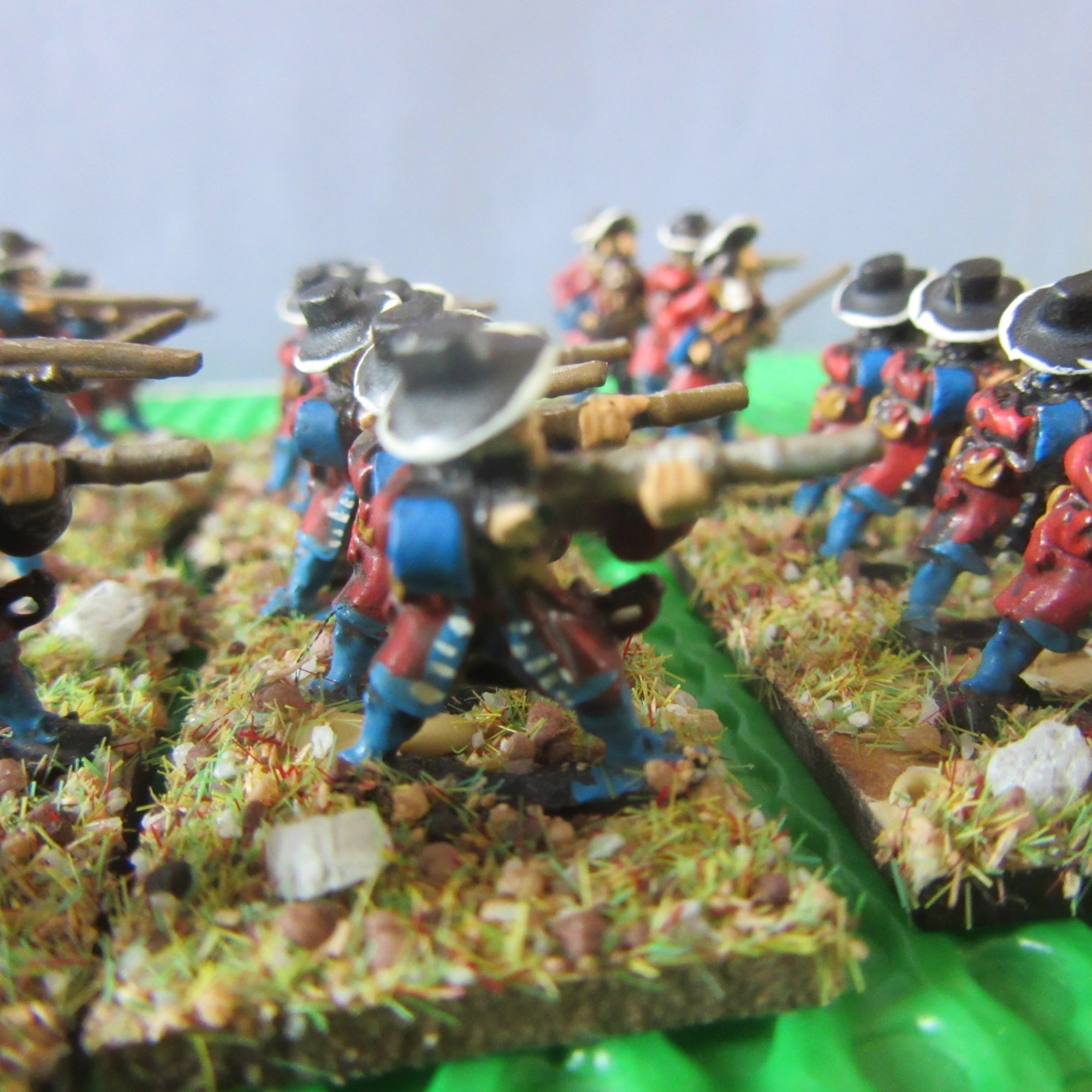 The 24-men Lurkio regiment that I bought in 2015 had ELEVEN poses. I like that. Cheap Irregular offers just five, eight if you count the officers. Besides, many Irregular miniatures, too many IMHO, have their left hand on their hip and their right arm outstretched, which is boring. I can’t judge Essex, because I don’t have a full regiment. I read they have 2-3 variations per pack of 8.